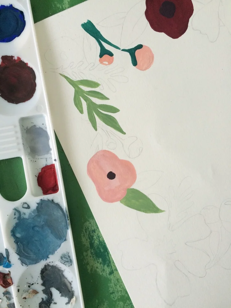 Designing, to me, means so much more than text on a computer, laid out perfectly with enough white space and balance. It also means having the knowledge to break out of borders and recreate structures. This is why I love painting. I posted a little while ago about working on watercolors (if you missed it, check it out here), and have been lucky enough to get to continue to incorporate watercolor and other paint mediums i.e.: Gouache!